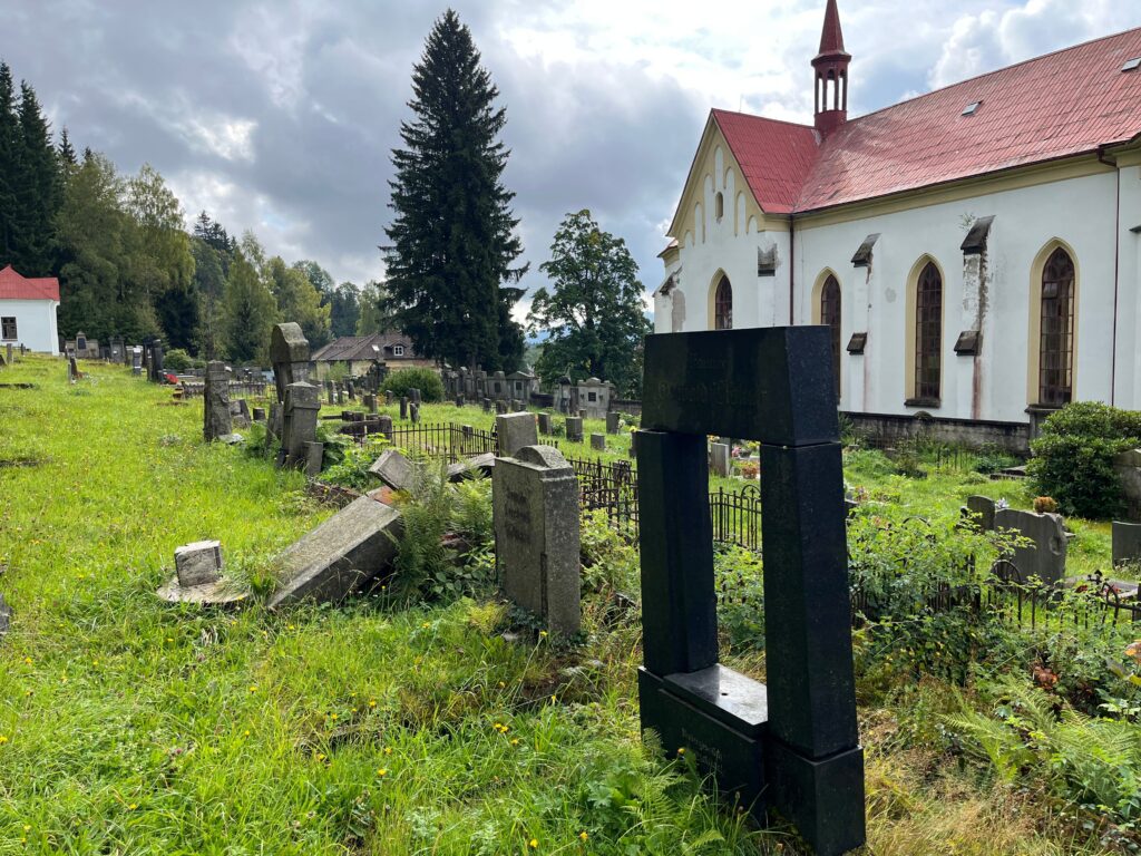 Sobotního rána jsme vyrazili na drobnou procházku v Josefově Dole. Prošli jsme náměstíčkem až ke kostelíku a zvědavost nás dovedla na hřbitov. Jenž hodně napovídá o historie obce. Stojí zde totiž hromada polorozpadlých německých hrobek.
