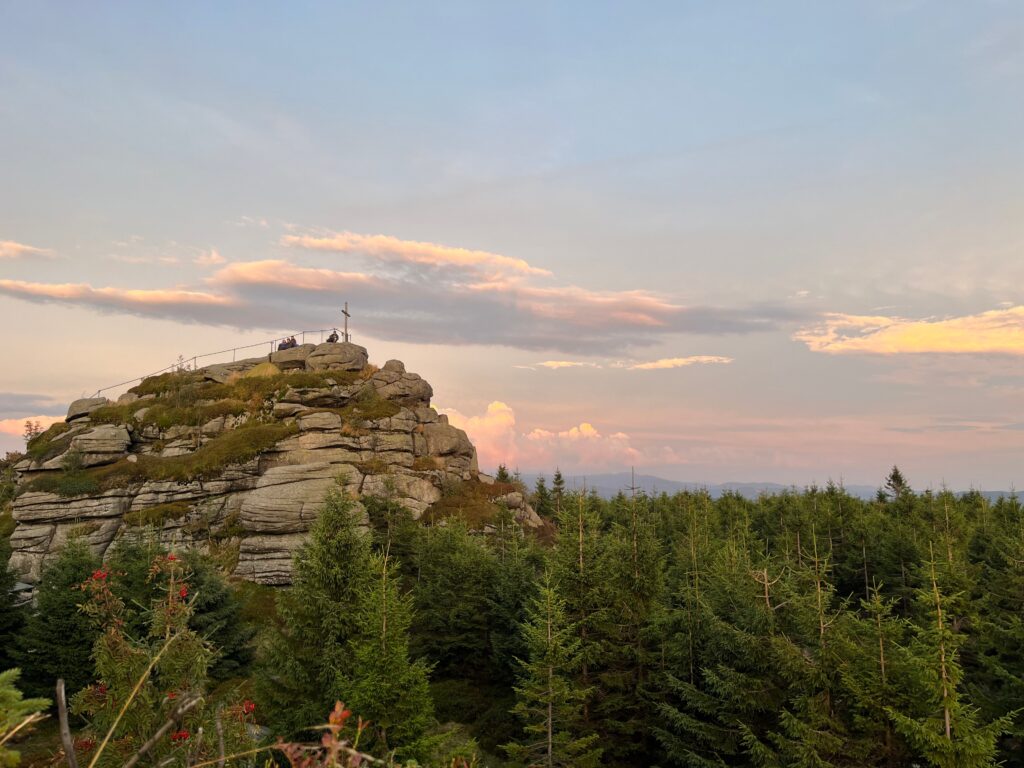 A tak jsme dorazili do Jizerských hor v pravou chvíli. Ubytovali jsme se v hotelu Nebe a zamířili k Čertovým kamenům. Trochu  kontrast. Z Nebe do Pekla. Nahoru a dolů. Tak jak to v Jizerkách chodí.