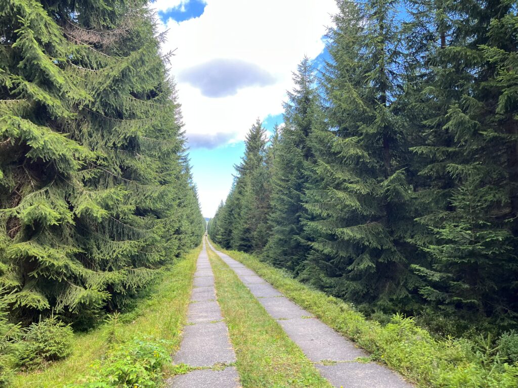 Hned na startu se pouštíme do jizerské “Route 66” pro cyklisty. Rovná cesta kam až oko dohlédne. Obklopeni stromy. Ovšem, nenechme se mást, cesta vede do slušného kopce a nohy se při výšlapu vaří o sto šest.