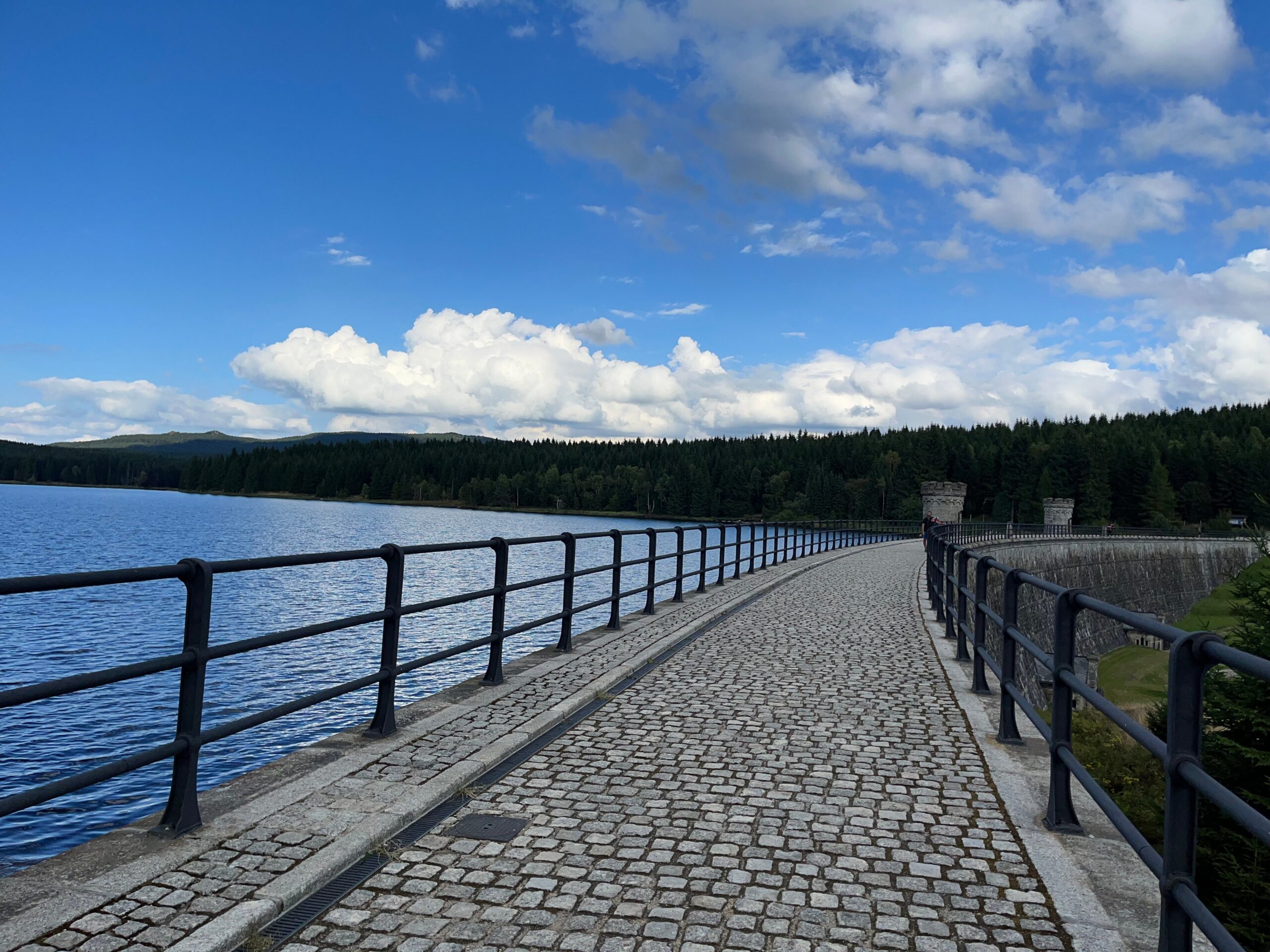 Finále etapy se blíží. Projíždíme přes legendární hráz nádrže Bedřichov. Fouká osvěžující větřík. Taky aby ne, nacházíme se u nejvýše položené přehrady u nás. A to v nadmořské výšce 775 m.n.m..